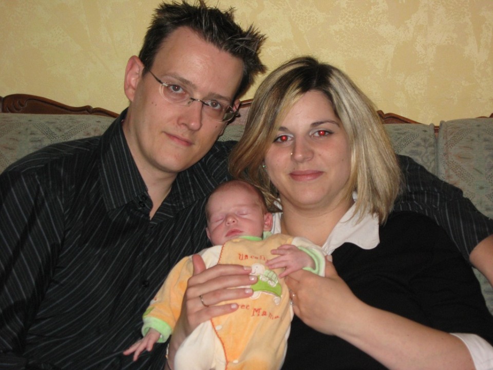 sur la première photo : tu es une mini-crevette et tes parents sont sérieux, fiers mais sérieux …