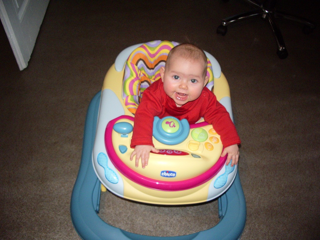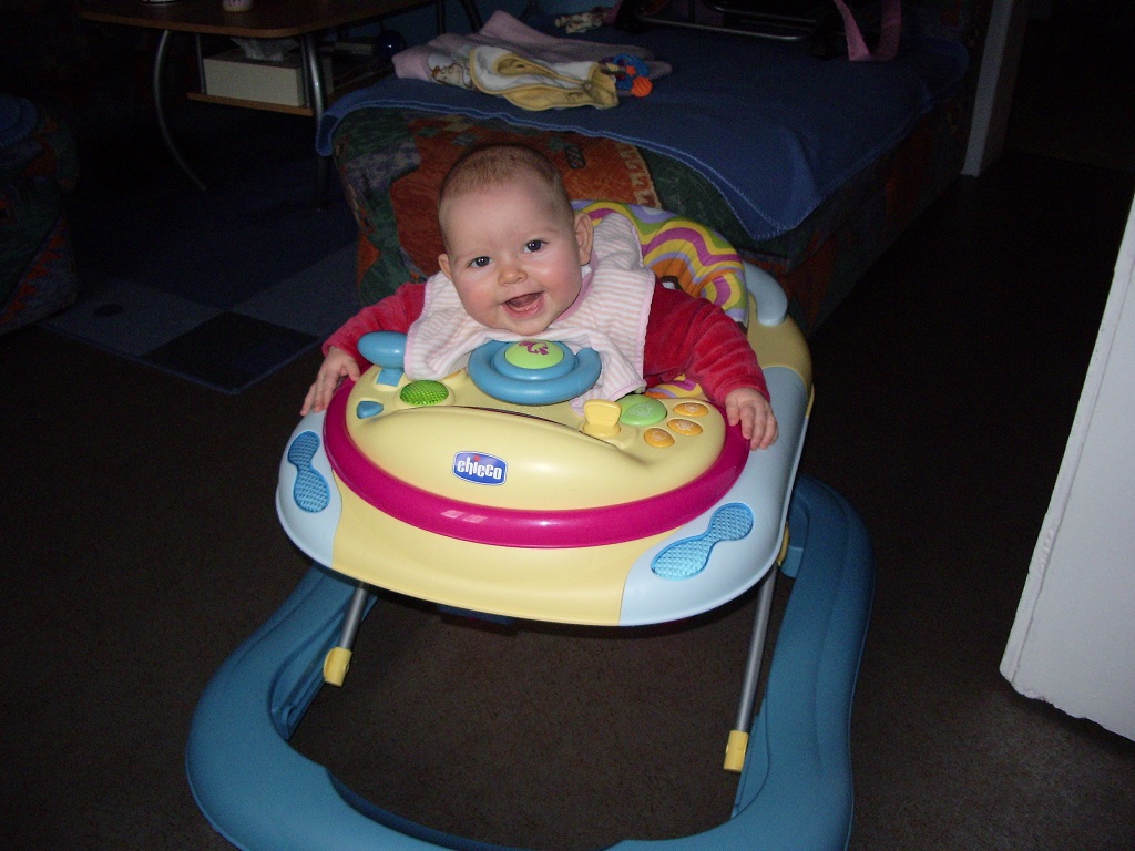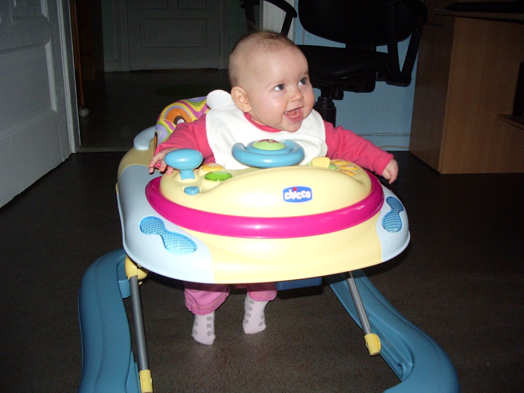 Hihihi oui Laurent est pas très content, mais je vais trouver un système je vais mettre de la mousse sur les contours du trotteur. Comme ça tout le monde est content!!