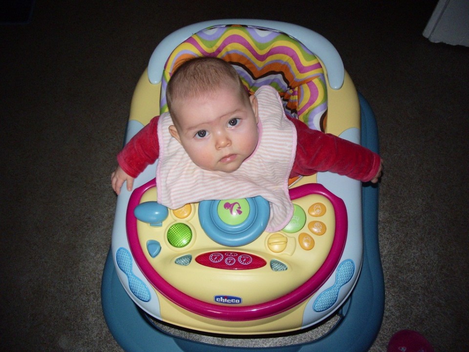 C’est un youpala, je l’aime bien même si mes jambes sont encore un peu trop courtes 🙂 Pour l’instant je découvre la tablette de jeu et surtout je lèche le klaxon hihihi!!! Maman a dû me changer de pull car il était tout mouillé tellement j’ai léché et bavé ^^