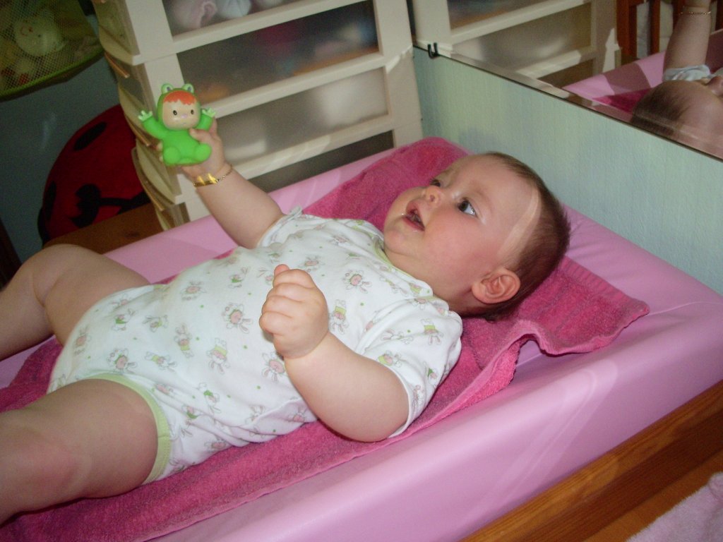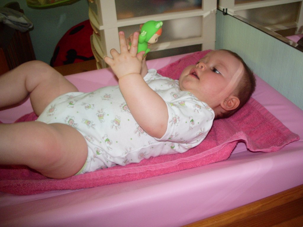 Seulement, une fois que je l’ai en main je ne veux plus le lâcher alors Maman doit se débrouiller pour m’habiller comme ça et faire passer ce petit bonhomme dans mes manches avec ma main hihi!! (sinon c’est la grosse crise de larmes…)