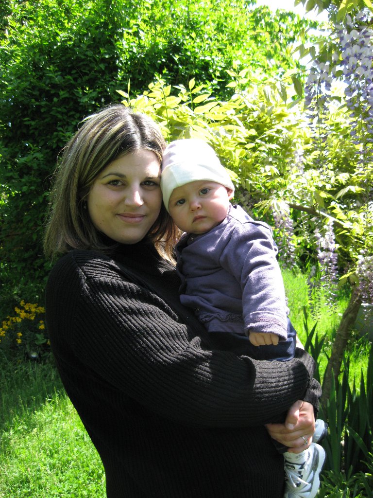 Maman m’a emmenée chez Mamy Nicole, et comme il faisait beau, on en a profité pour faire un peu de balançoire et prendre quelques photos. Elles sont toujours très bien réussies avec toutes les fleurs magnifiques de Papy Sylvain. Alors on en a fait une petite série avec Maman et ma Marraine. Ah j’ai aussi fais connaissance avec un nain de jardin hihihi!!