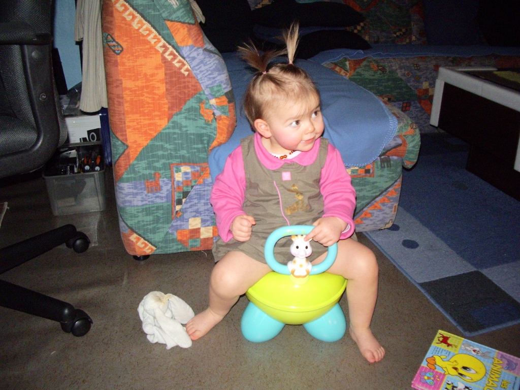 bravo Emma, faire dans le pot c’est mieux que d’avoir la surprise de mouiller ses chaussettes avec un « accident » en faisant sur le tapis à coté du pot , hum hum…. on en verra d’autres …..