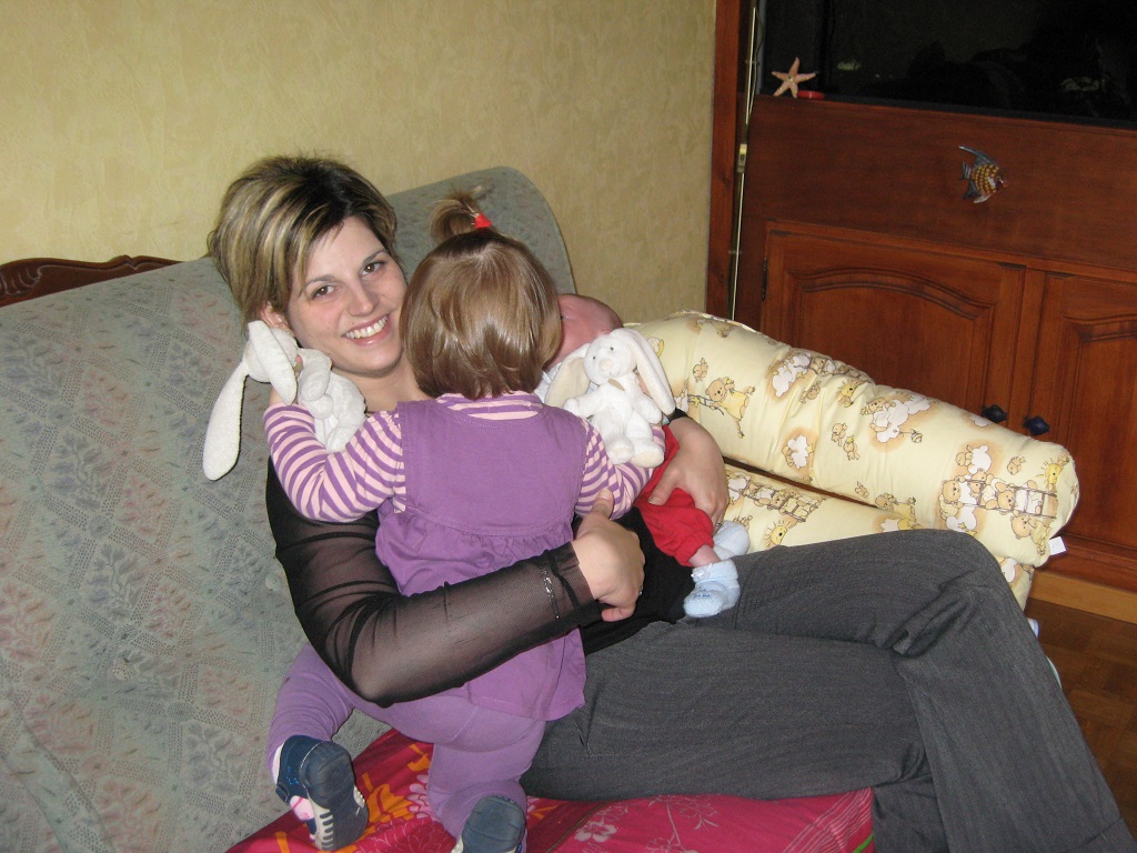Je vous joins 2 photos, dont une où on peut voir une Maman comblée de bonheur avec ses 2 grumeaux, fatiguée mais comblée quand même. 🙂