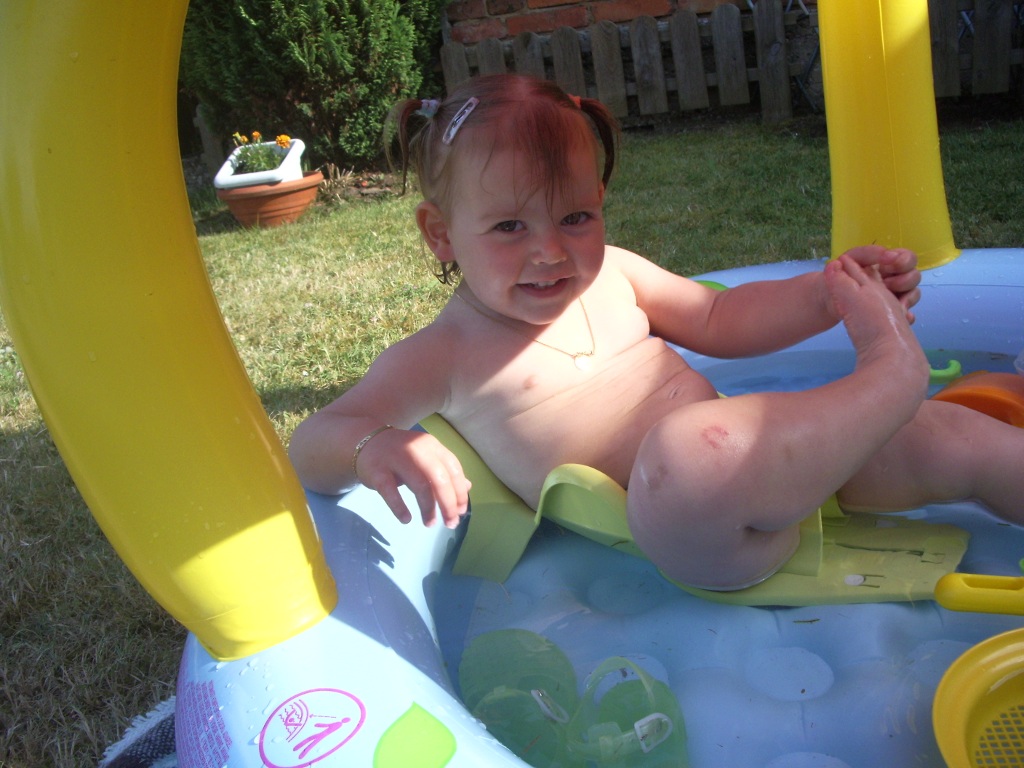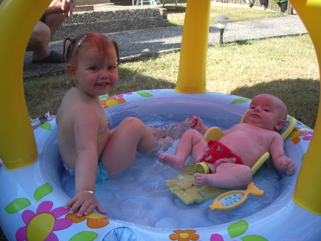 Depuis une semaine, Emma s’éclate dans la piscine avec toute la famille, aujourd’hui elle s’est amusée avec son frère dans l’eau grande nouveauté.