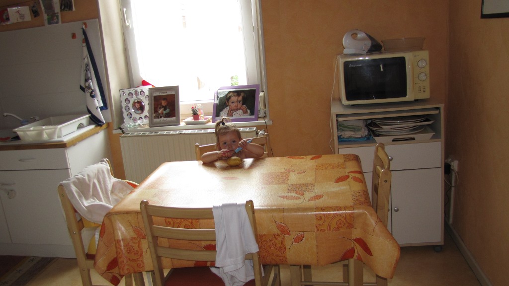 mais tu nous étonneras toujours, tu es allée sur la chaise toute seule et tu as mangé la patate crue ???