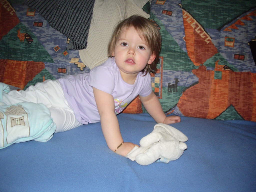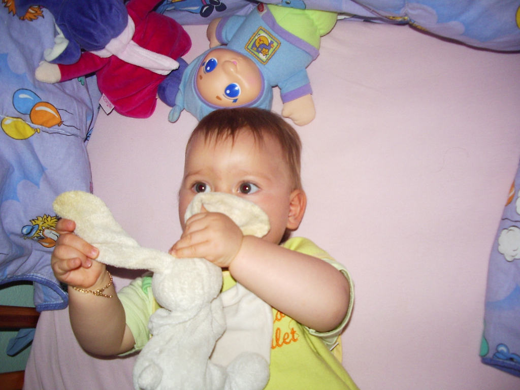 C’est rigolo comme les oreilles de ton doudou lapin jaunissent au fil des photos lool