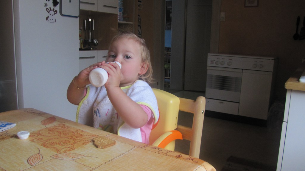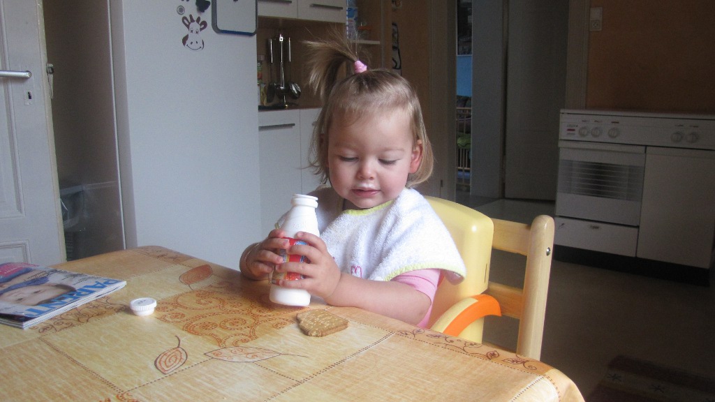 Hé oui, Emma veut boire à la bouteille comme les grands et les astuces ça sert bien, j’espère que ça va durer avec le coca pour enfants, tu es trop mignonne.