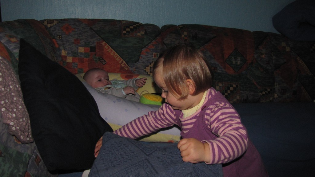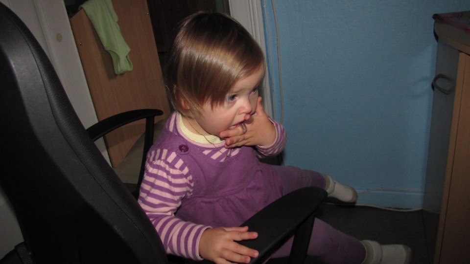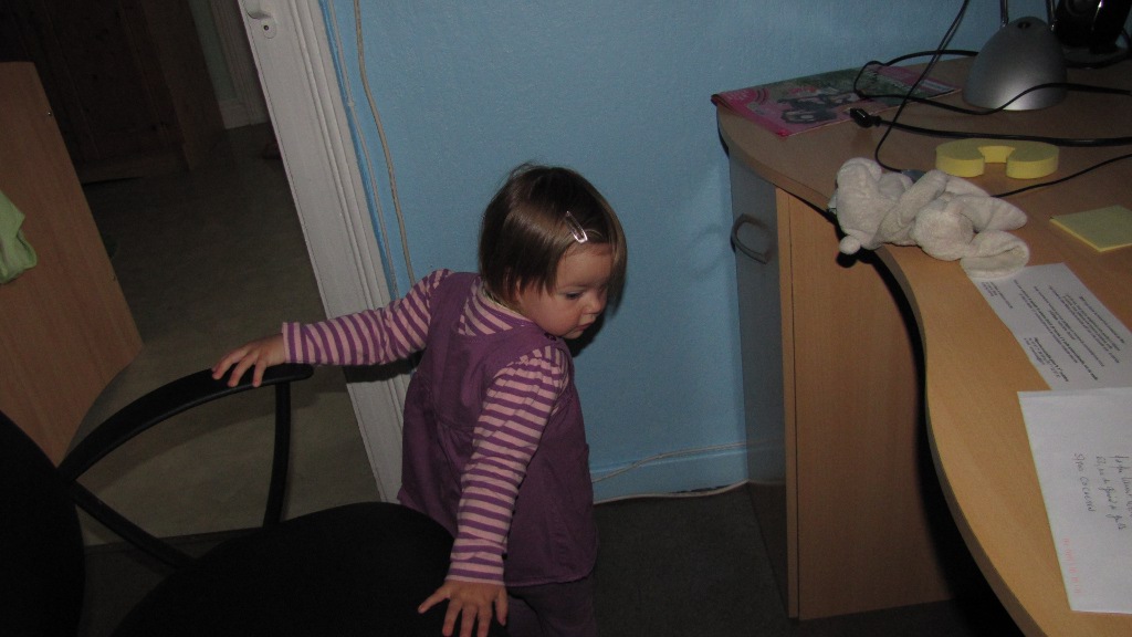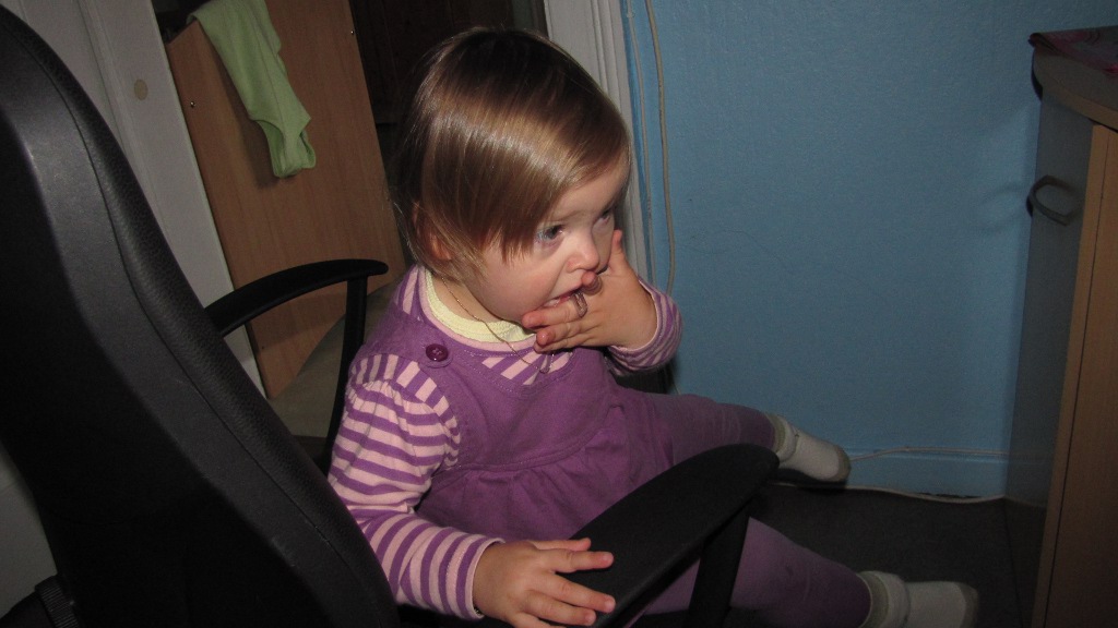 là tu as une bouille de 2 ans, tu fais vraiment « grande fille » comme çà, tu peux être satisfaite, çà te va très bien !