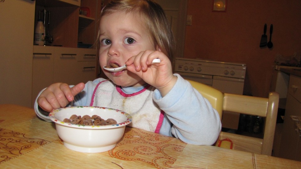 Emma mange des céréales!!