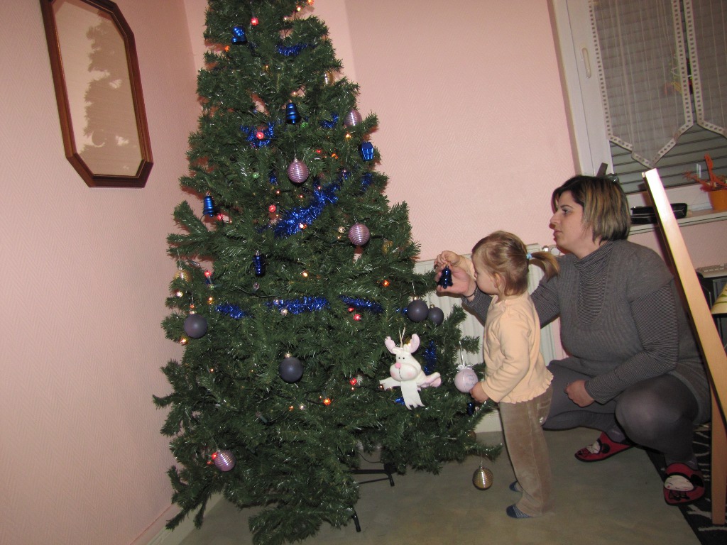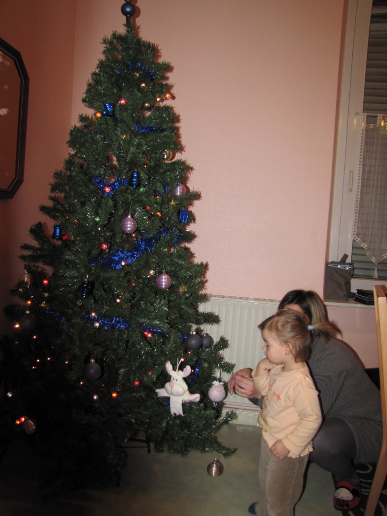 Eh oui, ça sent Noël, très beau sapin et Emma s’en donne à coeur joie pour le décorer et il faudra chanter « Mon beau sapin » comme dimanche avec mamy, papy et tata, tu as adoré et applaudi.