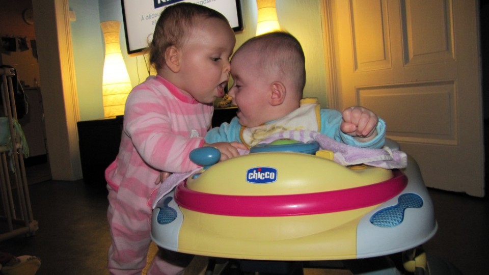 trop chou, toi en bleu et Louna-chérie en rose, elle est très caline comme toi, félicitation elle est très très jolie, vous allez parfaitement ensemble ! déjà qu’Emma l’aime bien, Louna a conquis toute la petite famille …