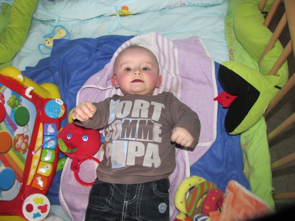 Fort comme papa!! c’est bien vrai avec tes 8,650 kg et 70 cm tu es vraiment costaud et en forme, continue comme ça pour notre grand bonheur à tous.