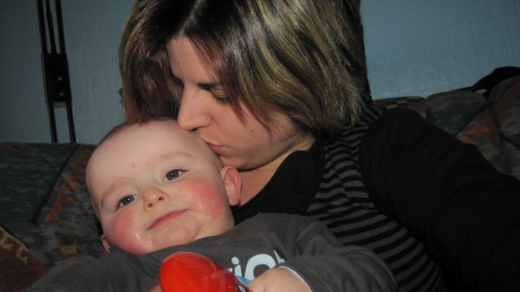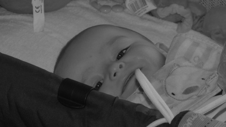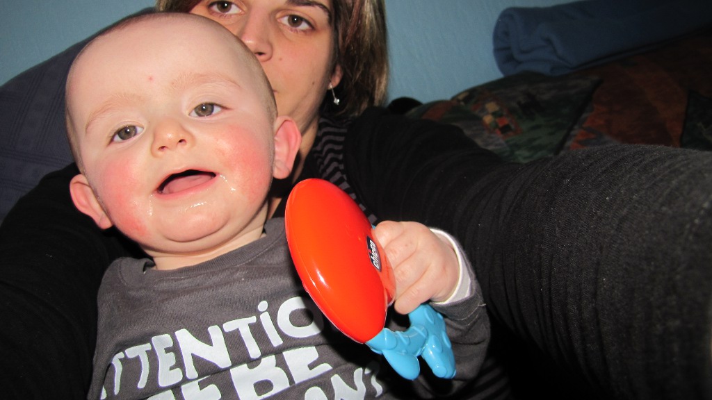 Maël le regard toujours droit dans l’objectif, super bébé Maël mais pauvre coco tes joues sont à nouveau très rouges