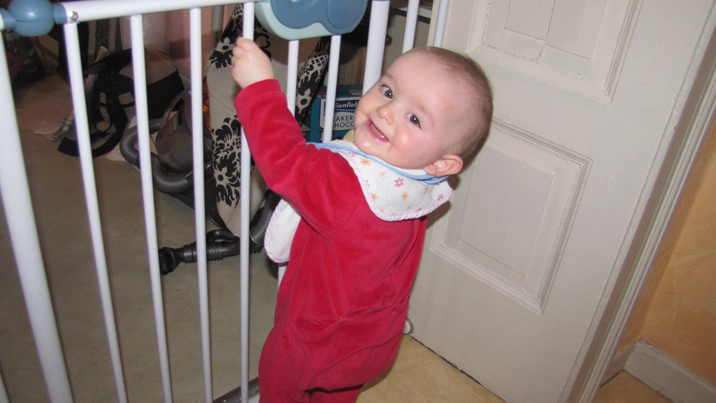 Je me déplace à toute vitesse à 4 pattes, et j’adore être debout. Je dis de plus en plus souvent « Mama » et « Papa », et je sais faire bravo avec mes mains, mais c’est seulement quand moi j’ai envie!!