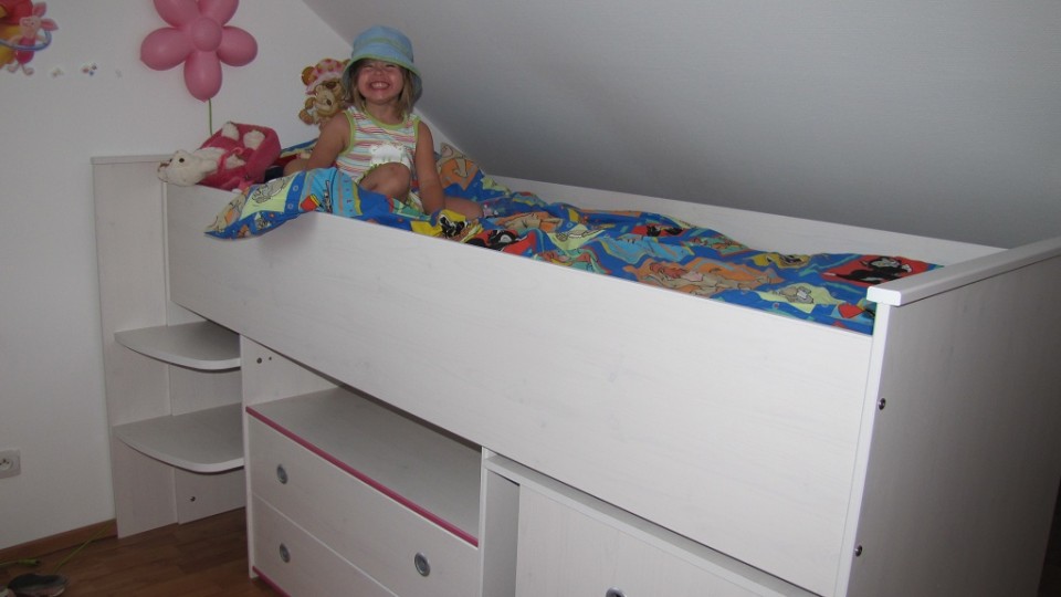 Et bien tu es bien fière de ton nouveau lit, en plus c’est super beau mais tu grandis vraiment trop vite à notre goût même maman le dit, une bonne sieste çà fait du bien rien de mieux pour tenir le reste de la soirée gros bisous à tous