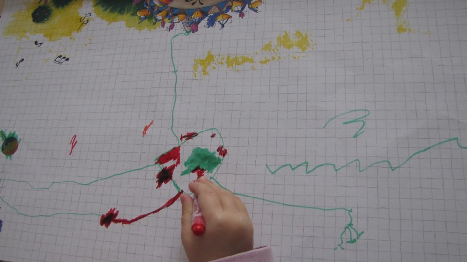 Ce matin elle était très sage, elle a beaucoup chanté, et aussi dessiné. Je sais pas ce qu’elle a eu cette nuit (39 de fièvre de nouveau), mais ce matin elle avait un peu le rhume et n’a rien voulu manger à midi, elle a réclamé son lit…