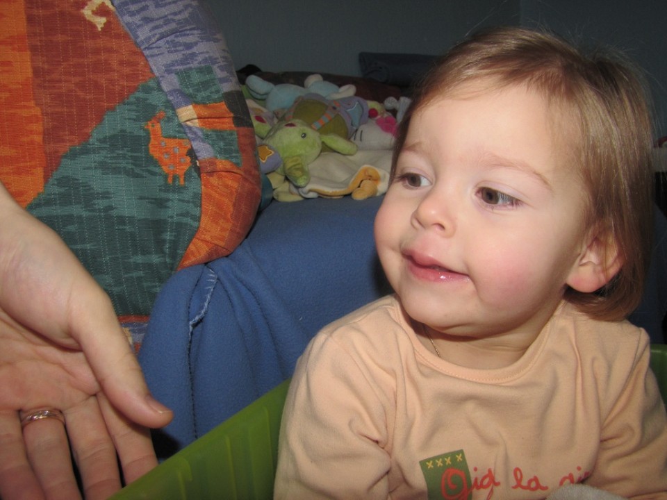 Je suis en vacances chez mes mamy depuis le début de la semaine (Maman a besoin de se reposer un peu), alors j’ai fêté mes 18 mois là-bas 🙂