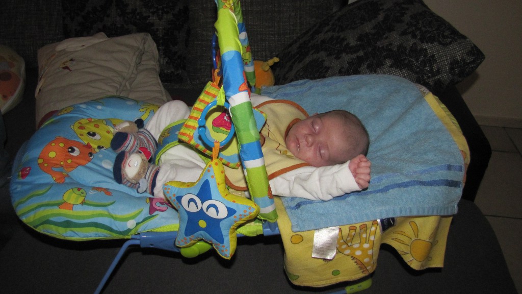 Je me suis bien habitué à mon nouveau foyer, en journée je dors bien dans le bureau de Papa (à l’abri de mon frère qui est un peu brute encore). Je me rendors assez vite après les biberons, et heureusement parce que Maman n’a pas trop le temps.