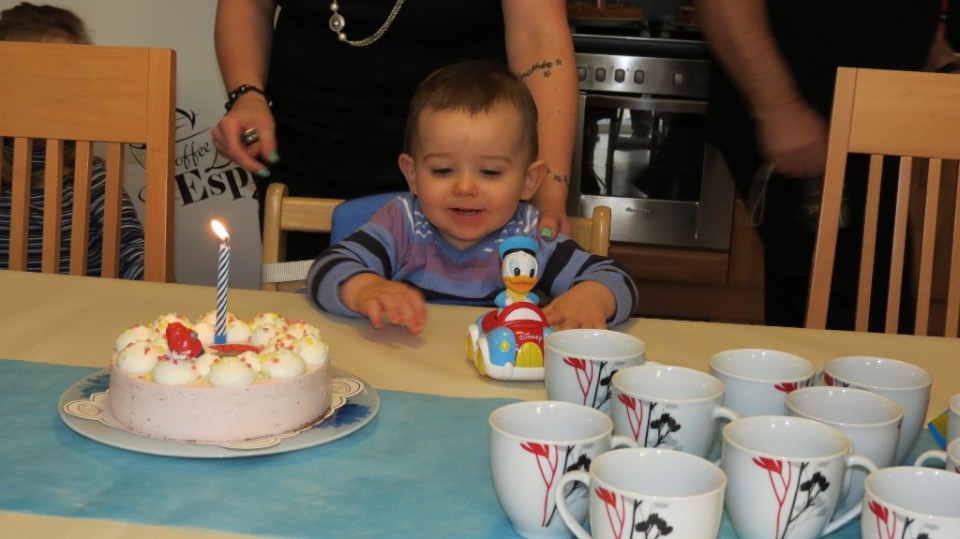 Belle fête d’anniversaire pour notre petit Timothée, le bon gâteau avec 1 bougie à souffler, les cadeaux, les enfants et tout le monde ont appréciés.